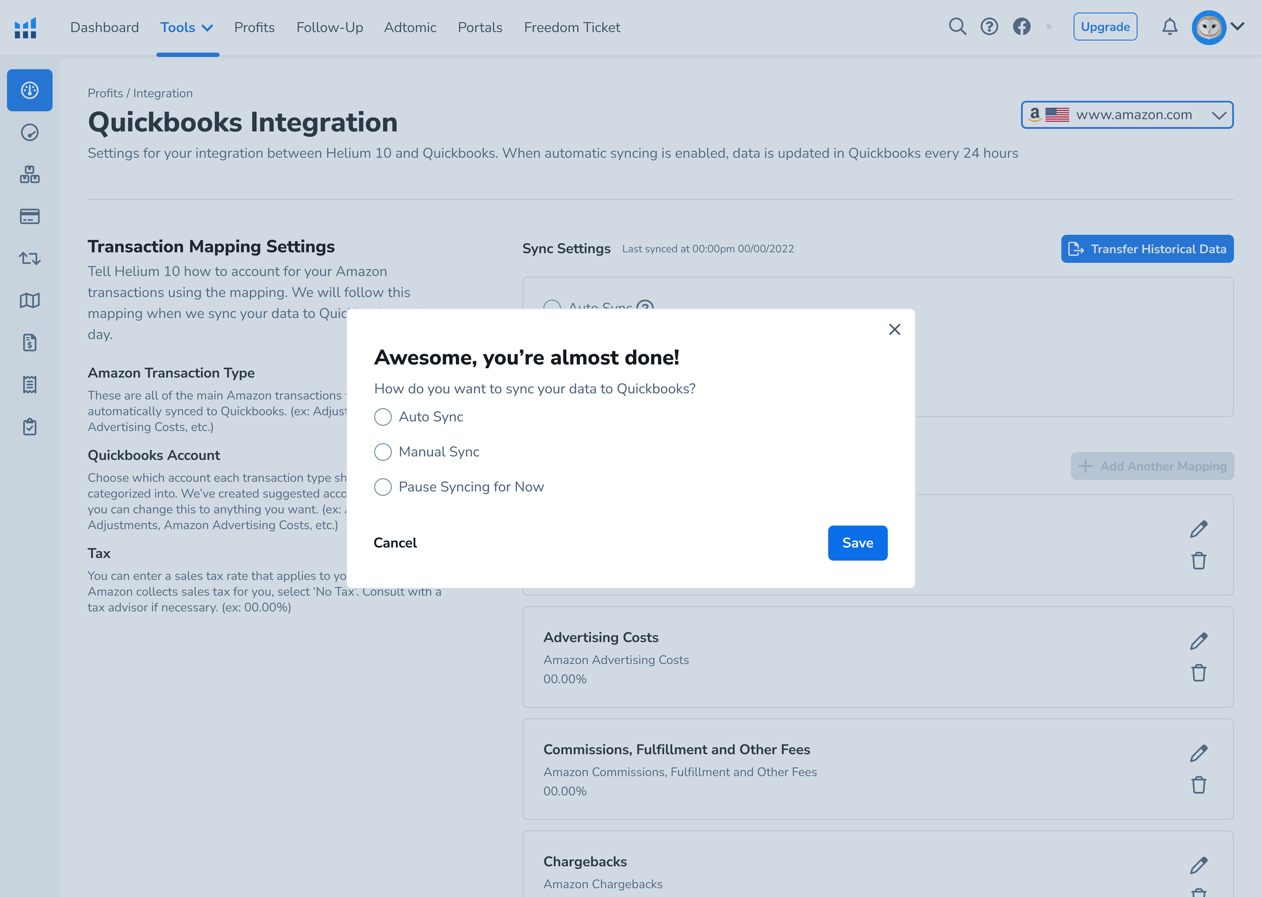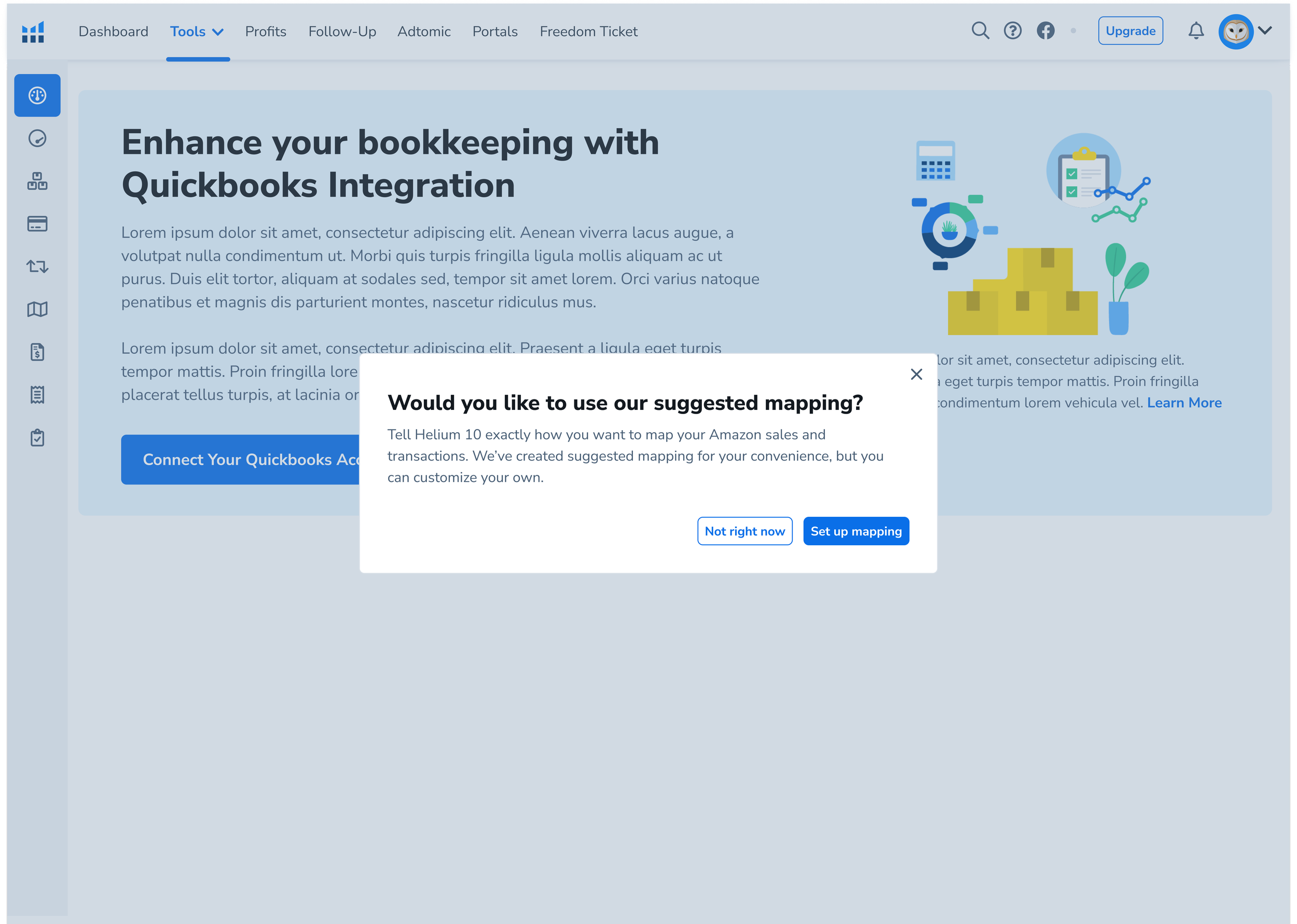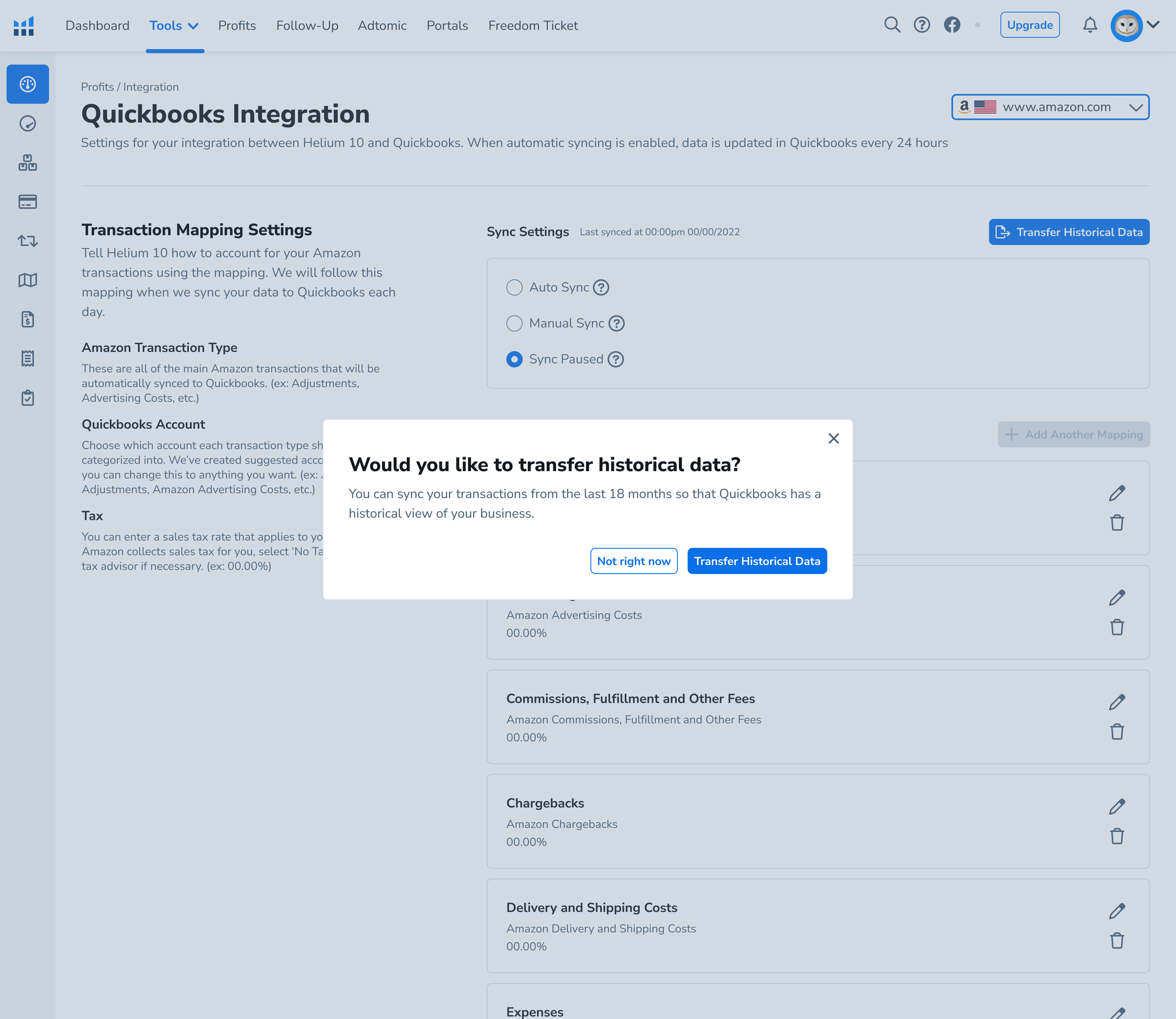 Helium 10 Profits is exploring data integrations that can make our product offering more valuable to e-commerce merchants. We’re examining both inbound integrations (Profits ingesting data from external sources) as well as outbound integrations (external applications receiving data from Profits). Helium 10’s first undertaking is outbound Quickbooks integrations.